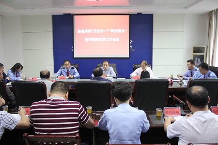 今日房县网讯 记者陈绍杰 通讯员代涛 杨误稀报道: 26日,我县召开全面实施“五证合一”“两证整合”登记制度改革工作会议,部署落实登记制度改革各项工作任务。县委常委、副县长高明哲及相关部门负责人参加会议。