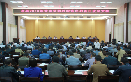 今日房县网讯 记者 王玮 报道:28日,我县召开2016年重点贫困村脱贫出列百日攻坚战大会,深入落实年初精准扶贫工作会议安排部署,紧盯“34个重点村脱贫出列、2.5万人脱贫销号”工作目标,保年度脱贫出列任务完成,实现脱贫攻坚首战首胜。