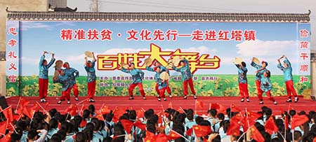 “精准扶贫 文化先行”《百姓大舞台》活动,在舞蹈《欢聚一堂》明快的舞姿中拉开了帷幕。随后,广场舞《跳到北京》、音乐快板《精准扶贫赞》、国标舞《舞动校园》、豫剧选唱《谁说女子不如男》、情景剧《土秀才开洋荤》等节目轮番精彩上演。