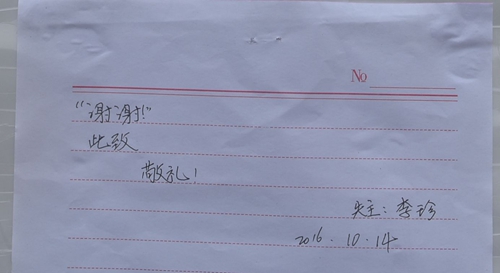 李珍女士写给李粮竹同学的感谢信