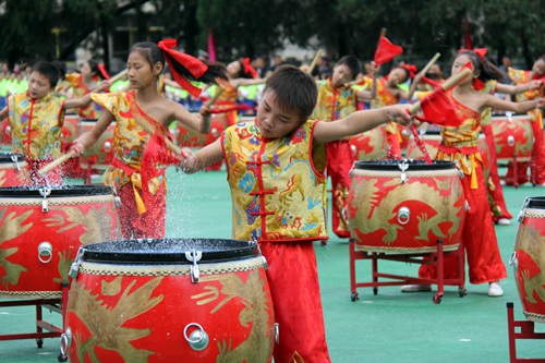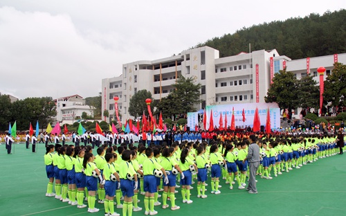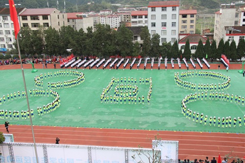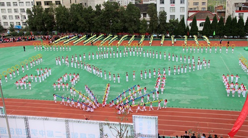 开幕式上,彩旗飘展,锣鼓喧天,彩旗队、裁判员、运动员迈着矫健的步伐走进运动场。县教育局党委书记、局长周兴富宣布运动会开幕。来自县青峰小学、实验小学、青峰初中还表演了水鼓、足球操、校园集体舞等精彩节目。