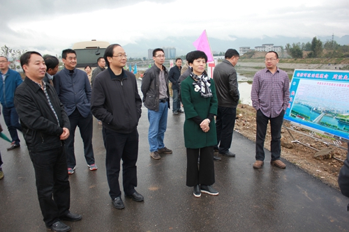 张慧莉一行在红塔镇沙沟河治理工程现场