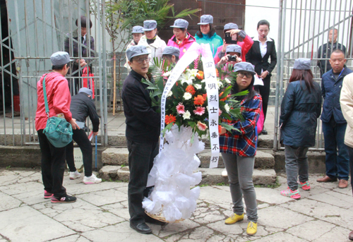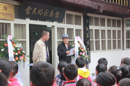 在房县,分会一行参观了以烈士雷天明命名的天明小学和雷天明纪念馆,学习了解雷天明烈士的生平事迹、战斗历程,并与雷天明烈士后代余策星老人进行了交流。县史志办主任邹清斌为分会一行讲解了中原突围部队在鄂西北战斗和工作的一些情况,并向分会赠送了《十堰党史》、《房县党史》。研究会副会长李炎代表分会向我县及天明小学捐赠了新四军历史研究会的部分研究成果和中原突围七十周年纪念章。