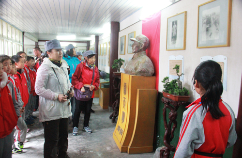 新四军研究会副会长李炎为天明小学学生们介绍五师分会突围情况