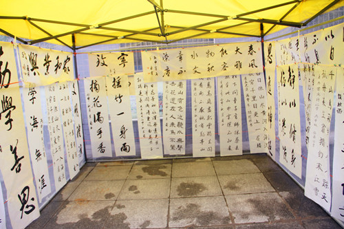 本次书画展,学校师生积极参与,创作出一幅幅生动传神、色彩绚丽、富有感染力的绘画和书法作品,题材丰富多样,充分展示了该校师生的艺术才华。本次书画展经过班级评比、年级推荐、学校遴选几个环节,最后评选出了一、二、三等奖的书法和绘画作品,并在校园内进行展出。现场展出作品形式各异,有国画、硬笔书法、水彩画、手抄报等,前来参观的同学络绎不绝,他们在书画作品前,驻足观赏,细心品味,现场洋溢着欢乐和谐的喜庆气氛,师生们以饱满的激情,挥毫泼墨,舞动丹青,聚集精彩。在点、线、面的节奏中,在七彩流光的韵律中,表达对未来美好生活的向往,讴歌对幸福生活的热爱。一张张绚丽的画图,一幅幅精美的书法,无不呈现青春的律动、诗歌的境界。