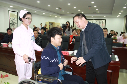 演讲活动中,该医院院长罗永洪还对贫困患者进行了捐赠,小患者魏赛男向精心照顾自己的“爱心妈妈”董桂荣赠送了鲜花。