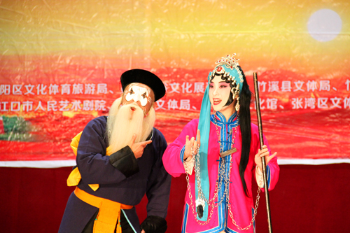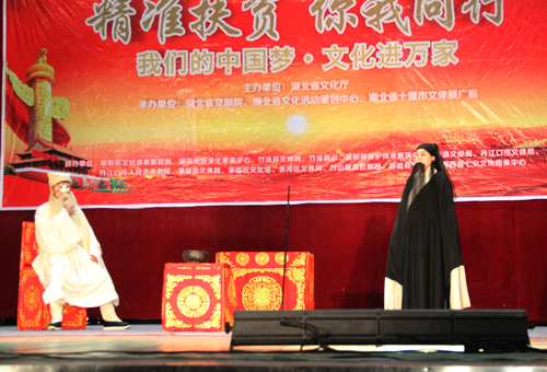 11月1日下午,由湖北省京剧院带来的折子戏《起解》、《乌盆记》和《泗水城》在县影剧院上演。《乌盆记》中,余派坤角老生的唱腔跌宕回环;《泗水城》里,刀马旦的身段娴熟精到……“有板眼”的房县观众被“有板有眼”的京剧折服了,叫好声此起彼伏。有观众感叹:“这才叫戏呀!” (高书文 龚成龙 摄)