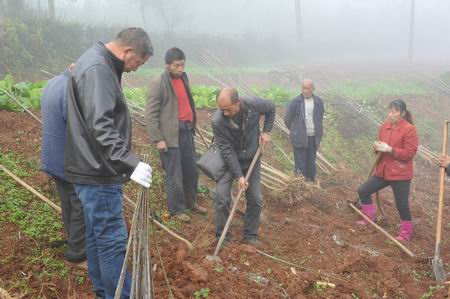 今日房县网讯 通讯员 王东 蔡康伟 报道: 11日上午天刚蒙蒙亮,满载苗木的卡车就开进了门古寺镇叶家河村6组的田埂边,40来位村民和县公路局驻村帮扶工作队员一起在苗木种植专家指导下,搬树苗、挖树窝、种苗木、培沃土…现场一片热火朝天的景象。