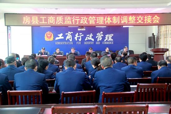今日房县网讯 记者田兰兰 通讯员代涛 报道: 11月15日,我县召开工商质监行政管理体制调整交接会,标志着我县工商、质监行政管理体制调整工作取得了实质性进展。县委常委、副县长肖大有,县政府党组成员丁选清出席会议。