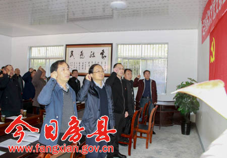“我志愿加入中国共产党,拥护党的纲领,遵守党的章程……”铿锵有力的入党誓词在山坳里回荡,指北村党支部主题党日活动正如期进行。县委书记、县人大常委会主任蔡贤忠与指北村23名党员一起重温入党誓词、集体诵读党章,并为全体参会党员讲党课。县领导付必久参加活动。“农村党员应该如何结合实际学习十八届六中全会精神?”蔡贤忠说,党的十八届六中全会释放出从严治党向基层延伸的强烈信号,村党支部和党员要以十八届六中全会精神为指导,讲奉献、敢担当、人干净、有作为,充分发挥党员先锋模范作用,团结带领群众积极投入到脱贫攻坚一线,聚焦精准扶贫建功立业。
