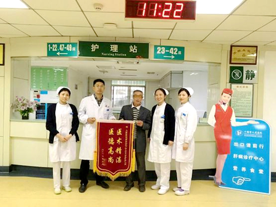 为了表达对泌尿外科一病区医护人员的感谢,余爷爷特意在出院半年后又送来锦旗表示感谢。