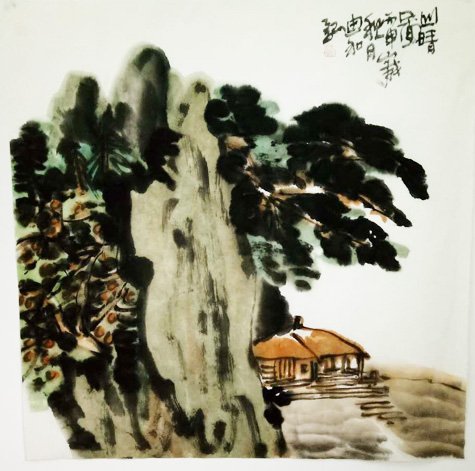 记者:到达房县的当天所作的松风水韵图看起来并不是房县的景色,采风后所作山晴图也是将挂榜岩、村舍、路边的柿子树抓取结合在一起,都不是实景?
