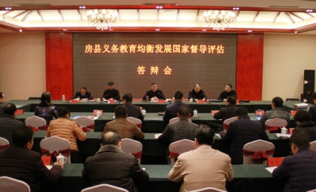 县委副书记、县长纪道清就房县推进义务教育均衡发展工作情况进行汇报,并就此项工作的具体措施、工作细节等方面进行了答辩。