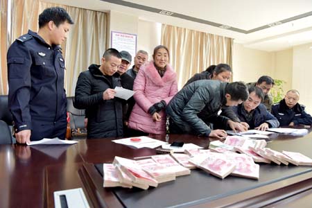 日前,白鹤镇61岁的农民王成江等22名农民来到县公安局,领取了他们三年前在一建筑工程务工时拖欠的全部251459.75元工资。