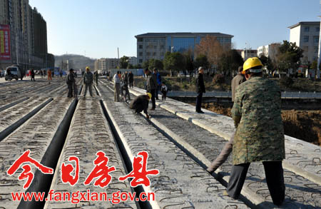 今日房县网讯 记者 吴宏强 通讯员 王东 报道: 13日下午,记者在唐城大桥施工现场看到,继该桥顺利实现半幅通车后,工程建设者加班加点施工,截至目前,唐城大桥桥梁全幅梁板吊装工作已经全部完工,建设者们正对桥梁梁板绞缝进行钢筋布装,河道的清淤治理工作也正稳步实施。记者现场了解到,春节前唐城大桥将全幅具备通车条件。