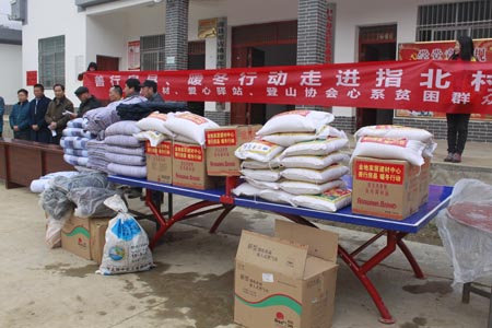 1月15日,由县委办牵头,房县爱心驿站志愿者协会、房县登山户外运动协会、房县金地建材共同参与的“善行房县、暖冬行动”走进指北村,为该村最需要帮助的25户贫困户送去粮、油、棉被、棉衣等价值近万元的物资,让他们温暖过冬。房县登山户外运动协会还与农户对接,组织会员们上门订购年猪、土鸡等,当日即帮当地农户销年猪4头、土鸡30只。(高书文 摄)