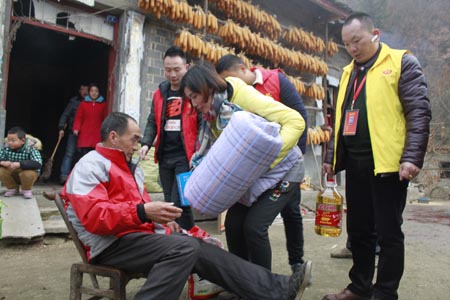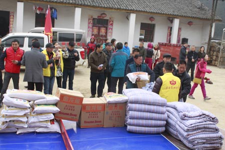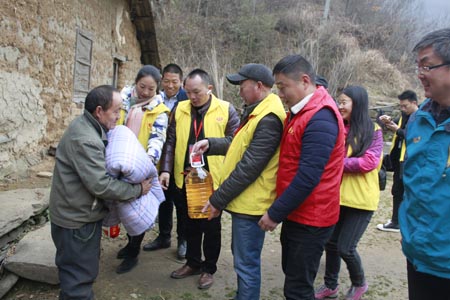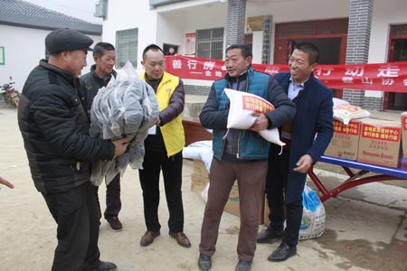 为贫困户送贫困户送去粮、油、棉被、棉衣等