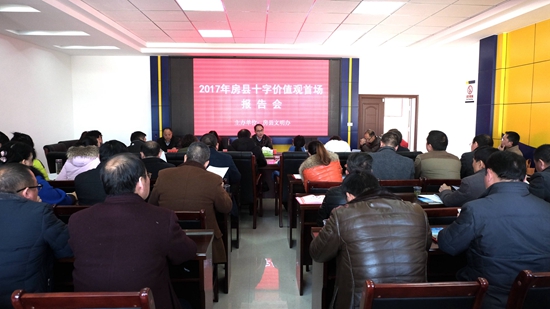今日房县网讯 通讯员任志勇 报道: 1月13日,房县2017年首场十字价值观报告会在县卫计局举办。县文明办做了题为“点燃价值明灯,构筑精神高地”的辅导报告。