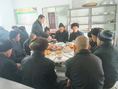 沙河乡值班人员陪福利院院民吃团年饭