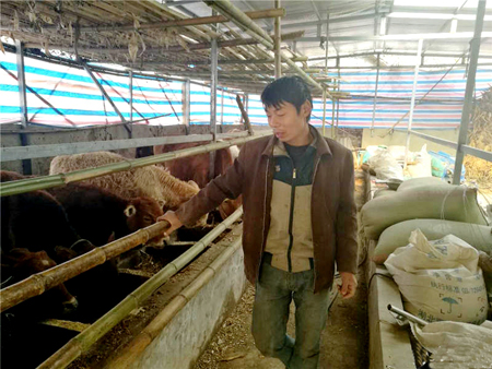 2016年3月,县财政局驻村工作队进村后了解了他的情况后,驻村第一书记、县财政局副局长蔡教弘多次上门和吴高明一起规划、研究,在充分考虑实际情况的前提下,确定了发展养殖业的思路。吴高明在工作队的帮助下一边盖牛圈,一边申请10万元扶贫贷款,并着手购买牛。2016年5月贷款下来后,吴高明从本镇养牛大户张安民那里购买了7头小牛。