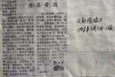 据查,这篇介绍房县黄酒的文章刊载在《郧阳报》1986年3月1日第二版,是迄今为止发现最早的在新闻媒体宣传房县黄酒的文章。