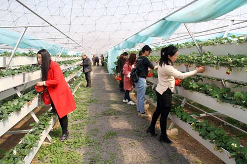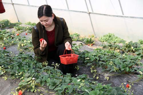 湖北禾益农业科技种植园的草莓近日进入成熟采摘期,引来八方游客就地采摘热销。据了解,该园区占地100多亩。自今年1月1日开园以来,日产量达1000余斤,吸引了十堰周边地区和本地游客近30000余人次来此旅游观光,目前,实现销售收入近200万元。小小草莓带动了20多个贫困农户进园务工脱贫致富。 赵爱平 李明琴 刘智宝 摄