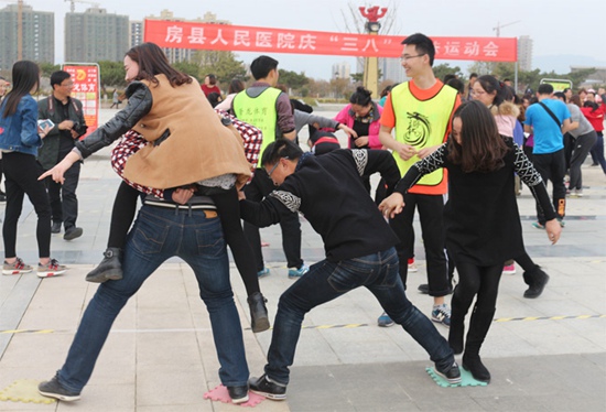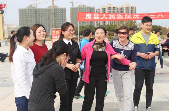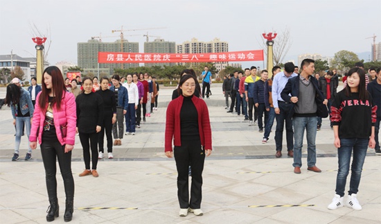 今日房县网讯 通讯员裴中东 屈振坤 报道: 又是一年春光美,今朝更胜往日晖。在“三八”国际劳动妇女节来临之际,为了丰富职工的业余文化生活,让女同胞轻松、快乐地度过一年一度的妇女节,3月8日,房县人民医院在诗经文化广场举行了以“姐妹相约,开心过节”为主题的趣味运动会。