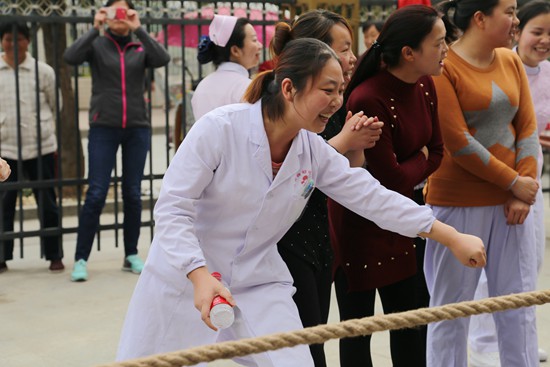 比赛共有9支代表队参加,伴随着裁判的一声哨响,选手们紧握绳子,紧咬牙关,倾斜着身体用尽全力,场面十分激烈。啦啦队的呐喊助威声此起彼伏,把气氛一次又一次推向高潮,欢声笑语溢满整个活动现场。 经过激烈的较量,最终临床男子组和妇科组分别摘得男女组桂冠。据悉,为庆祝”三八”妇女节,县保健院精心策划、全力组织,相继举办了拔河比赛、“三八节、我最美”女性图片征集活动、全院女职工体检活动等,受到了全院女性同胞的热烈欢迎。