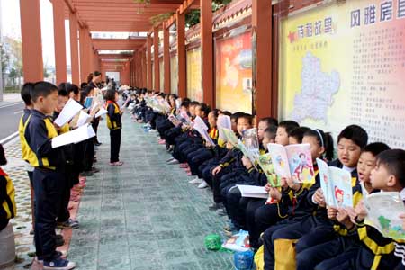 近日,东城小学学生在文化长廊进行晨读,诵读国学经典诗文。为创设良好的读书氛围,该校开展“春暖花开,与阅读相伴”读书活动。读书活动在常规教学基础上,重点推出“清晨与好书为伴,用经典滋润童年”早读活动,评选“书香班级”“书香家庭”“书香明星”,鼓励学生爱读书、坚持读书,让读书成为该校学生的自觉行为和习惯。 (李英 摄)