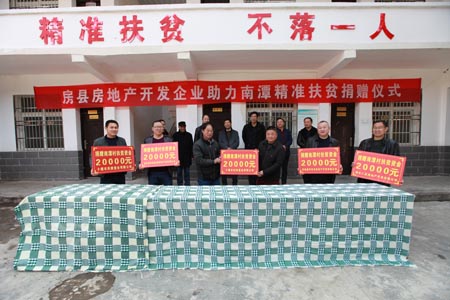 18日上午,由房县房地产管理局牵线搭桥,新时代国际广场、半岛湾风雅城市广场、瑞富未来城、温泉纯水岸、诗源华府5家民营企业慷慨解囊,向房地产管理局驻点村——红塔镇南潭村捐款10万元用于该村发展产业等脱贫项目建设。