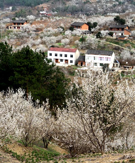近日,城关镇八里的樱桃花竞相开放,吸引大批游客前来观赏。近年来,该村发展樱桃种植面积3000余亩,每年为农户增收300多万元,全村绿化率达91%。据悉,我县实施“生态立县”成效显著,已创建国家级生态村1个,省级生态村17个,市级生态村60个。(张启龙 摄)