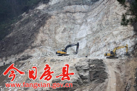 方家畈水库大坝左坝肩已爆破开挖至502高程