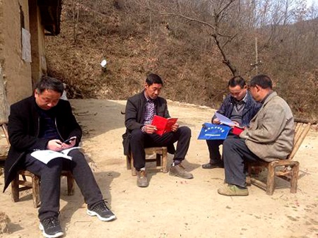 县农机局长局李敬东带领干部职工在卧牛观村为村干部宣传农机深松技术、补贴政策