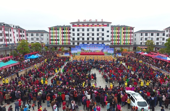 “镇东边:河堤绿化美如画;镇西边:老街修复换新颜;看北边:乡村街道实在妙,环境卫生第一条;镇南边,省发改委来作指导,光伏发电创收了,药材、核桃基地见成效……月明建立创业园,指北胭脂米在发展,上茅坪村还有花菇园,种植魔芋在开展,草莓、花卉连成片,欢迎游客来观看……”军店镇政府的表演唱节目《和谐新军店》,用群众身边实实在在的变化,展示出军店镇精准扶贫工作的做法、成效。