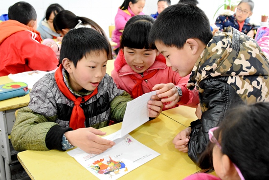 同学们互相分享着同龄朋友的情谊和问候,并且纷纷拿起手中的笔来进行回信,有的孩子还准备制作一些有益的小卡片来送给东风22小学的朋友。