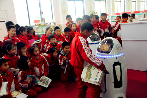 “对于孩子们而言,‘小胖’就是他们探究人工智能、机器人领域的一个起点,我们之所以让‘小胖’走进学校、走进阅览室、走进孩子们,就是想通过这样的方式,启迪孩子们的认知,调动他们的求知欲,激发他们的创造力,让更多的孩子向往人工智能、机器人领域并主动靠近它…….也许,孩子们这一次和‘小胖’的亲密接触,将改变孩子们的人生轨迹,后期,我们还将打算建立创客机器人教室,装备人工智能机器人,开展人工智能校本课程……”该校校长卢清泉如是说。