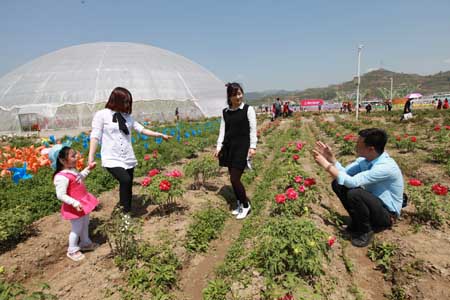 房陵牡丹园牡丹种植面积39万平方米,品种繁多,各色牡丹将这里变身花海,为游客带来一场惊艳的视觉盛宴。游客们置身在这样梦幻般花的殿堂中,欣赏牡丹,观看演出,品尝美食,购买土特产品,其乐无穷。