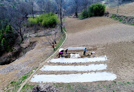 今日房县网讯 通讯员 裴中东 报道: 日前,笔者在野人谷镇马里村获悉,由该村南山深处农民专业合作社聘请的20多位村民正在紧锣密鼓的筛土培育辣椒苗,栽种的2400株梭罗树苗已开始发青吐芽。