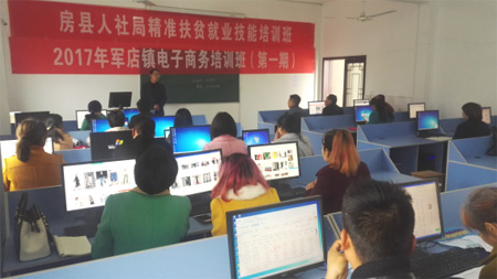 军店镇在县人社局的支持下,镇委、镇政府为实现农民增收、贫困人口早脱贫,常年开展培养实践型电子商务人才。本次培训的对象有高校毕业生、城镇失业人员、精准扶贫户等。培训课程为期10天。目的是依托电子商务平台带动军店镇精准扶贫大产业的发展,将木耳、香菇、粉条、魔芋、中药材、核桃等农产品运用互联网的新路子供销,为农民增收提供便利。