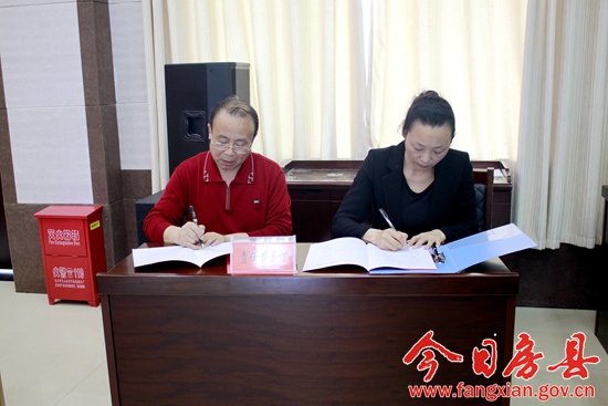 副县长王玲代表县政府与各乡镇、相关单位签订环保工作目标责任书