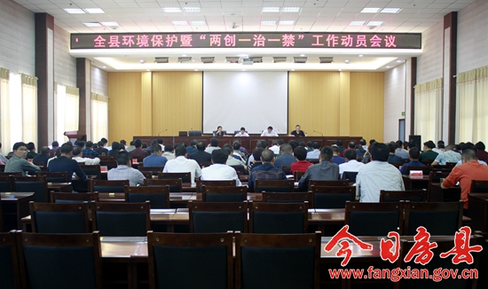 今日房县网讯 记者田兰兰 通讯员徐淼鑫 报道: 5月10日, 我县召开环境保护暨“两创一治一禁”工作动员会,总结2016年全县环境保护工作,安排部署2017年环保各项工作,对国家生态建设示范区和省级环保模范城创建、农村环境综合整治、秸秆禁烧三项工作进行全面动员。县领导王家波、谢永翔、王玲、袁堂珍出席会议。