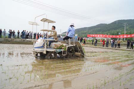 9日上午,全县水稻生产全程机械化现场推进会在红塔镇朱湾村农机化示范基地举行,吸引全县相关乡镇的种粮大户共50余人现场观摩。近年来,县农机局靠前贴近基层一线服务,抓好机插标准化育秧和插秧机操作培训等关键技术环节,大力推进水稻全程机械化进程,水稻机插率不断提高,深受广大农民的青睐。 (代启和 摄)9日上午,全县水稻生产全程机械化现场推进会在红塔镇朱湾村农机化示范基地举行,吸引全县相关乡镇的种粮大户共50余人现场观摩。近年来,县农机局靠前贴近基层一线服务,抓好机插标准化育秧和插秧机操作培训等关键技术环节,大力推进水稻全程机械化进程,水稻机插率不断提高,深受广大农民的青睐。 (代启和 摄)