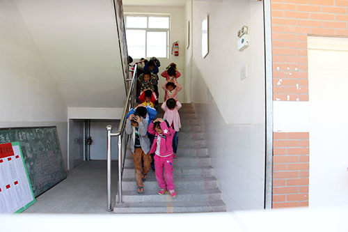 今日房县网讯 通讯员李伟 报道:5月12日上午9:20整,土城小学响起了一阵阵急促的警报声,随着第一次警报声响起,各班主任老师立即告知学生“地震了,不要慌”,并指挥学生双手护头,蹲在桌子下和教室承重墙角落进行紧急避险,其他老师迅速到楼梯间就位,待第二声警报声响起,各班老师立即组织学生排队用手护头、弯腰低身、沿着指定的疏散路线,快速有序地撤离到学校操场安全地带,随即各班清点人数,并向上汇报。整个防震应急疏散演练紧张有序,有条不紊,仅用时间1分8秒。