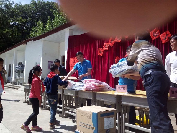 这事还得从开始说起:前些天,一位曾在母校读过书的成功人士黄全梅回老家探亲,她知道到九道乡水田小学建在塘坊村,地处偏远山区,学校教学条件落后的现状,暗暗起了感恩母校之心,回去后,就联系了武汉东风本田公司和中通物流公司联合带着捐赠物资支持山区教育发展的深情厚意,来到房县九道乡水田小学开展物资捐赠助学活动,这就是前面几位家长好奇的一幕。