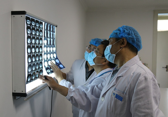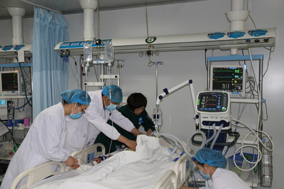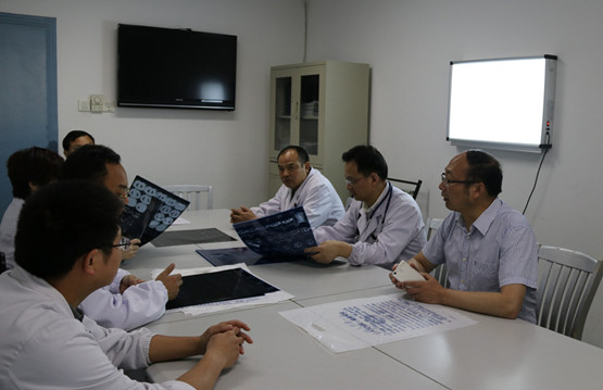 副院长柯尊宇(右一)听取会诊专家意见并现场指挥抢救