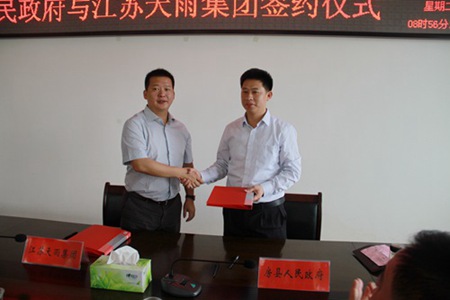江苏天雨环保集团与县政府签订项目合作备忘录