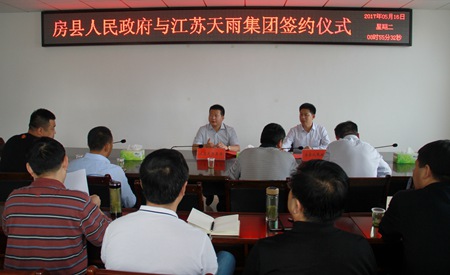 今日房县网讯 记者 刘臣 通讯员陈舟 报道:5月15日至16日,江苏天雨环保集团总经理王旗军一行来我县考察洽谈污水处理PPP项目合作事宜,并与县政府签订了项目合作备忘录。县委副书记、县长纪道清,副县长丁选清,县政府党组成员熊祖友出席签约仪式。