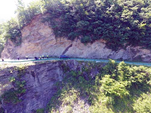 联合执法人员在玉皇观危险路段进行安全检查