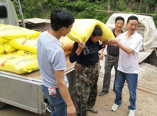 今日房县网讯 通讯员潘春富 报道:6月1日上午,尹吉甫镇财政所组织10名党员干部将30袋化肥分别送到珠藏洞村石灰沟的扶贫户家中,帮助他们解决苗期追肥的燃眉之急,为贫困户解决了当前农业生产中的困难。帮扶户夏龙生紧握毛所长的手说:“感谢你们工作队给我们送来了及时肥啊!”