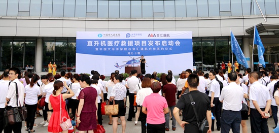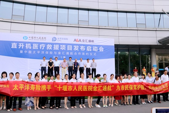 今日房县网讯 通讯员周玉池 报道: 6月2日,十堰市人民医院、中国太平洋人寿保险股份有限公司十堰中心支公司携手上海金汇通用航空股份有限公司湖北分公司举行十堰市直升机救援服务项目启动仪式,正式向十堰及周边大众宣传发售直升机空中救援服务,实现空中救援、商业保险与医疗保障的优势资源整合。